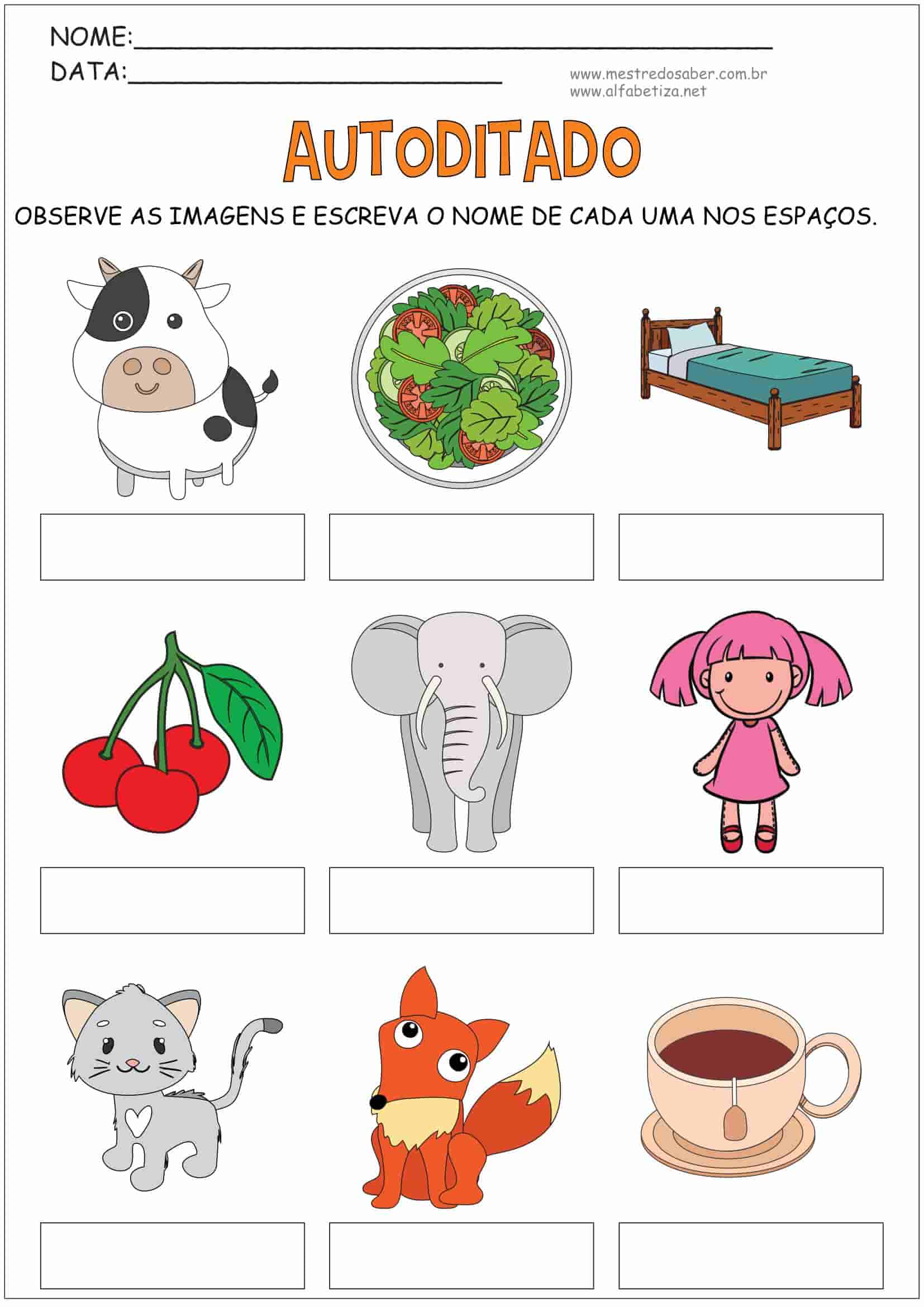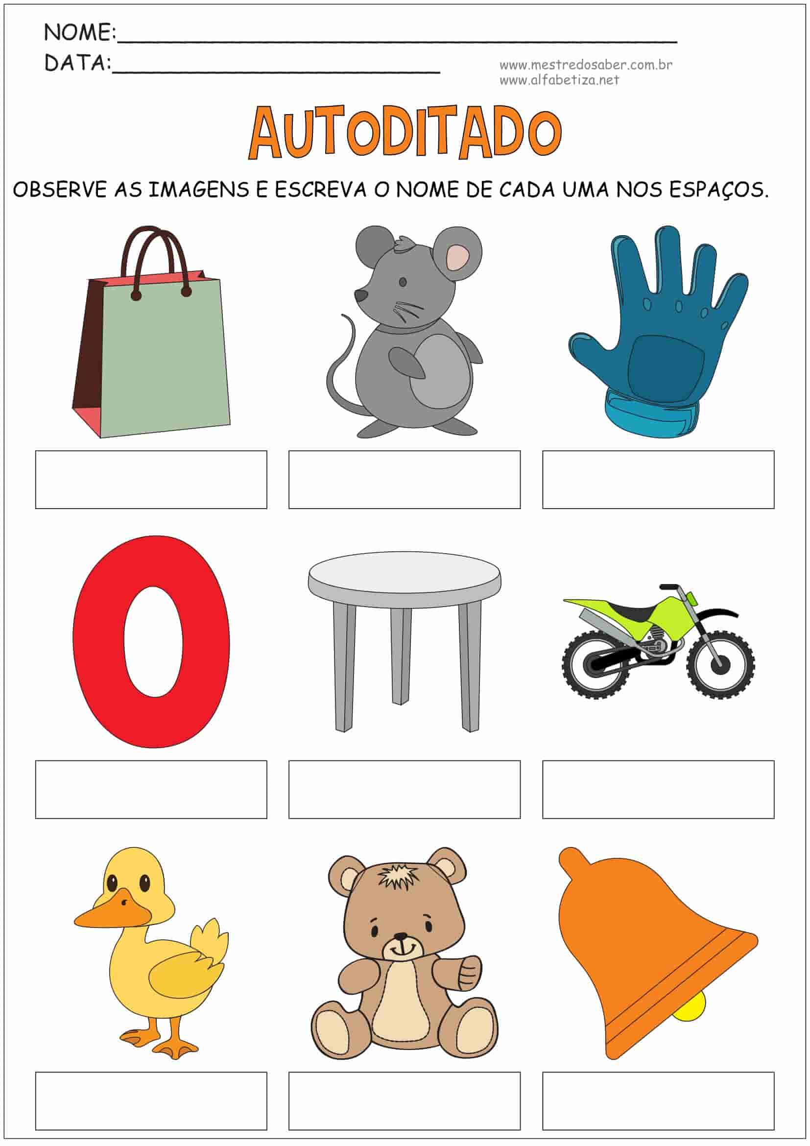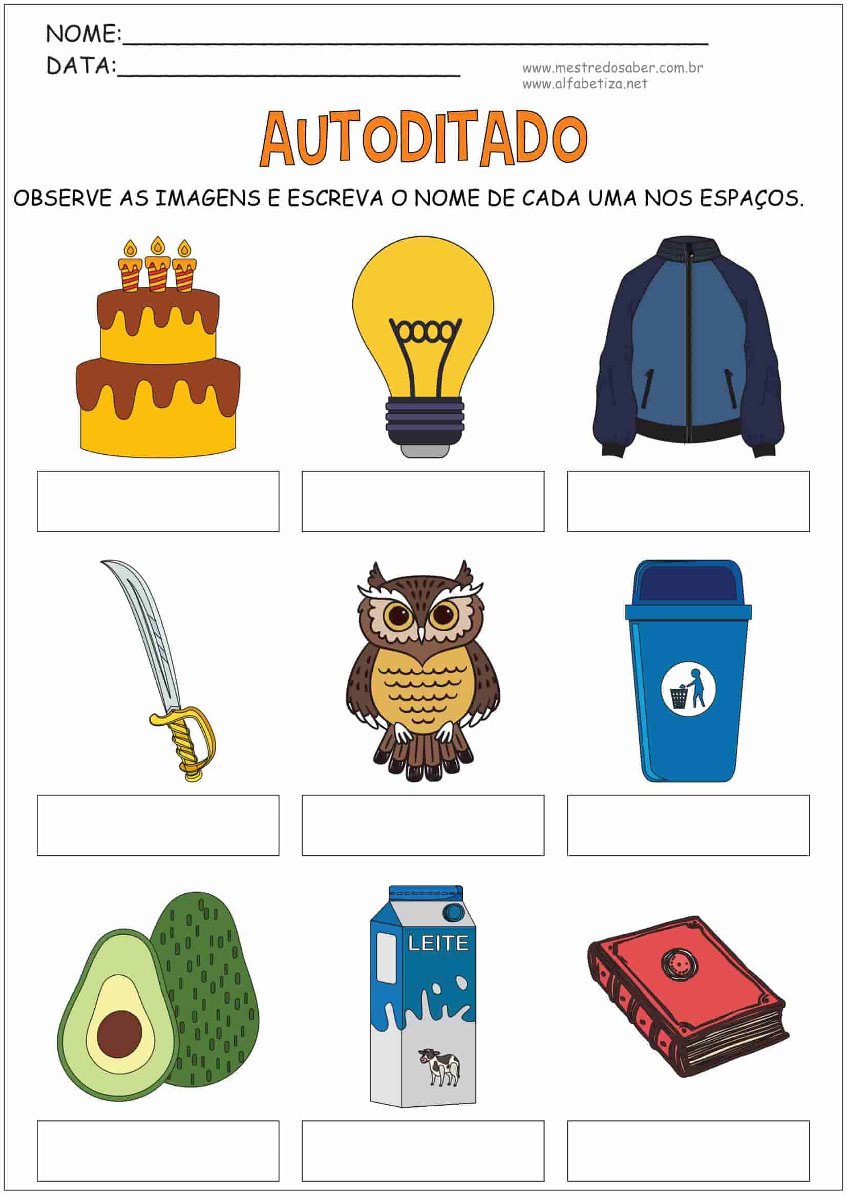 A postagem Autoditado traz seis (6) páginas exclusivas desenvolvidas pelo Blog Mestre do Saber – Atividades de Alfabetização. Criamos este material com o foco específico em fazer a criança pensar sobre a estrutura da palavra sozinha. A criança deve planejar e executar a escrita de maneira autônoma.